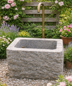 Brunnen spaltrauh aus Granit in 80×60 cm Höhe 50cm.