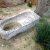 Roter runder Brunnentrog, (O100cm, Höhe 60cm) mit teilweise grüner Patina, aus Sandstein